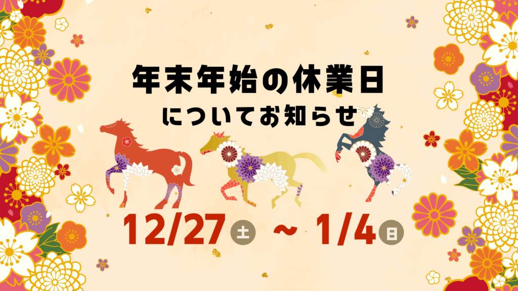 新年の1月5日(月)10:00より通常業務となります。休業期間中にお問い合わせ、ご連絡いただきました件については、1月5日(月)以降に順次ご返答させていただきます。
